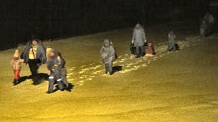 Officers located the group, who were carrying suitcases, thanks to a tip from U.S. border officials.