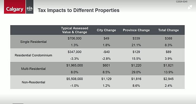 “Then, in terms of a dollar amount in that same period of time, that's about $1,100, the amount pf increase for the provincial portion on the median single-family home versus about a $400 increase on the City of Calgary’s portion,” he said.