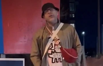 Lionel Loganathan confronted Alex Curley, who was damaging signs in the evening.