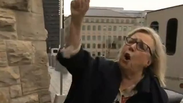 May cheering for Ford outside of Parliament Screenshot: CBC