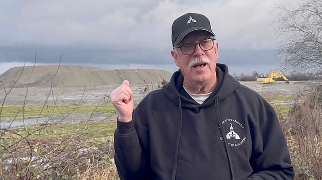 "An issue here all over British Columbia is the illegal dumping of fill on our precious farmland," he said, pointing at the pile behind him. "Of course this crap fill material is coming from construction sites all over the Lower Mainland and it's going to farmland to be dumped because it's inexpensive to put it on farmland."