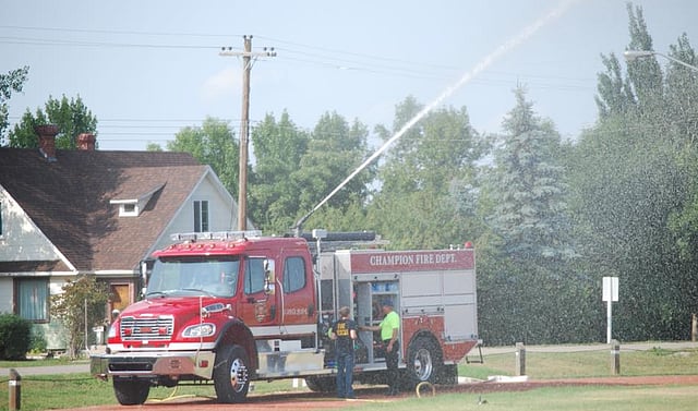 At approximately 11:30 p.m. Sunday, officers responding to the alarm spotted the Champion Fire Department vehicles speeding away.