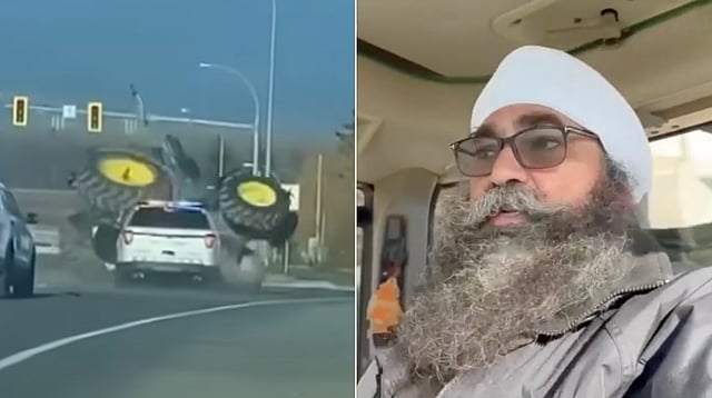 Malkiat Singh Shoker, who also goes by "Bill," was driving down Highway 1 in his tractor en route to a protest against sexual orientation and gender identity in schools when he made contact with a police cruiser and flipped over.