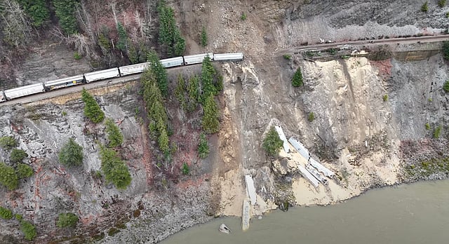 According to a local who witnessed the aftermath with her drone, the incident took place around noon on Sunday December 22. The impact sent numerous cars down the cliff into the Fraser River below, with one found floating 4km downstream.