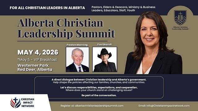 RED DEER, ALBERTA — Christian Impact Network has announced that Alberta Premier Danielle Smith, Reform Party of Canada founder Preston Manning, and Multi-Platinum Christian country artist Paul Brandt will headline the inaugural Alberta Christian Leadership Summit, fostering direct dialogue between Christian leadership and Alberta’s government. The event will take place Monday, May 4, 2026, at Westerner Park in Red Deer, Alberta.