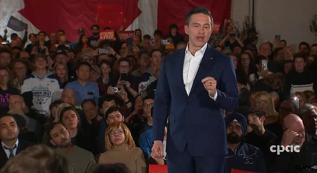Tory leader Pierre Poilievre greeted a cheering crowd at a campaign rally in North York, ON, Sunday night, as federal leaders gear up for the April 28 election.